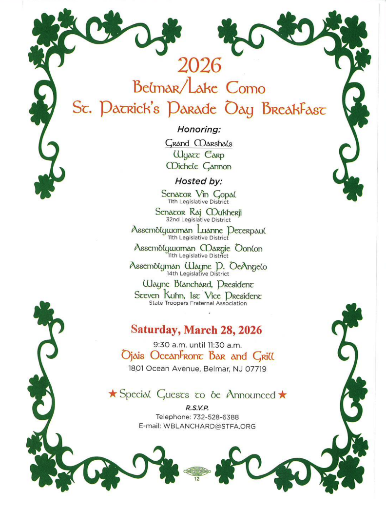 Belmar/Lake Como Parade - Saturday, March 28th