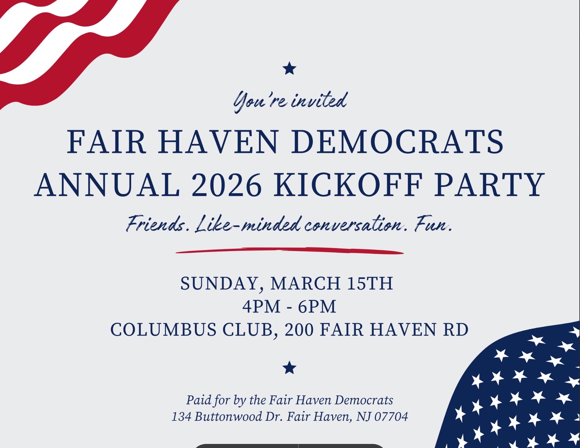 Fair Haven Democrats Annual Kick-Off Party - Sunday, March 15th